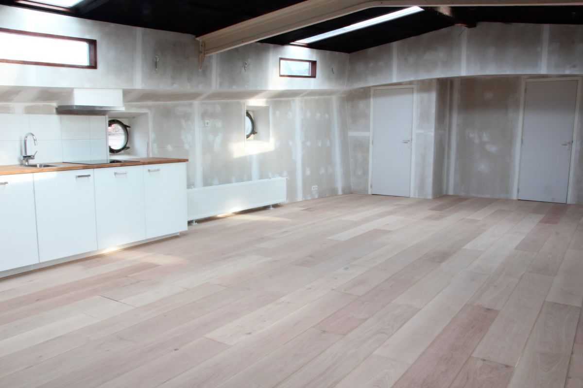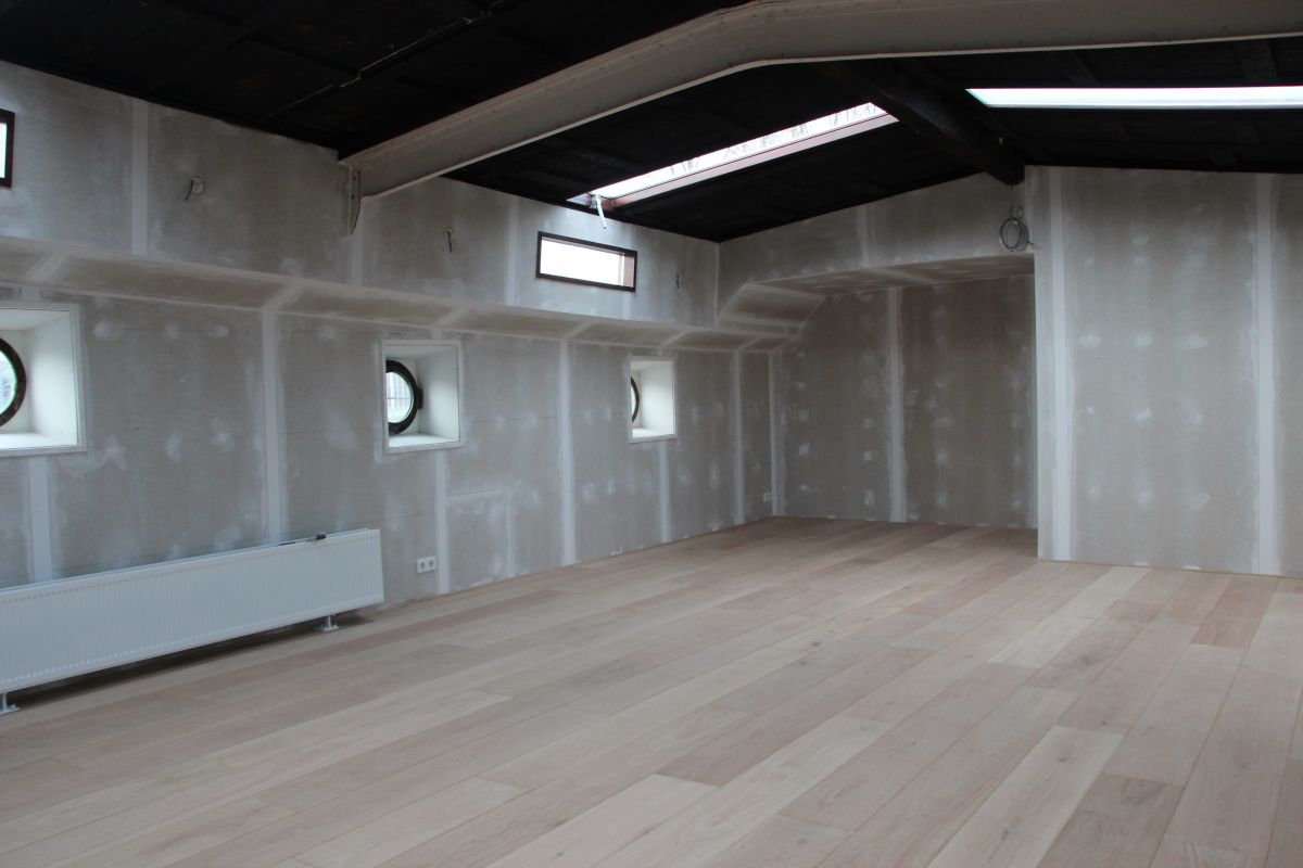 Er is door het verwijderen van de schotten tussen de roef en het ruim en het verlagen van de roefvloer een vide gecreëerd. Dit geeft een hele ruimtelijke indruk.