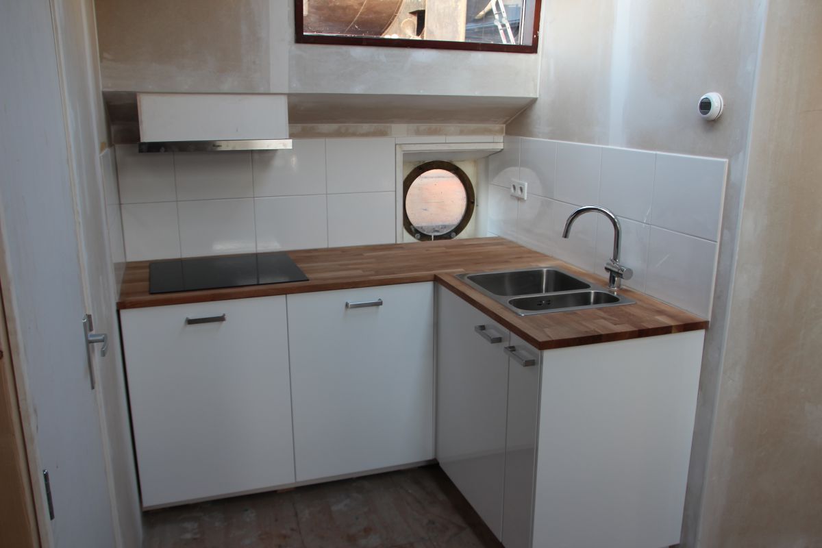 Het schip ligt in Amsterdam, het interieur is door de eigenaar zelf afgewerkt.